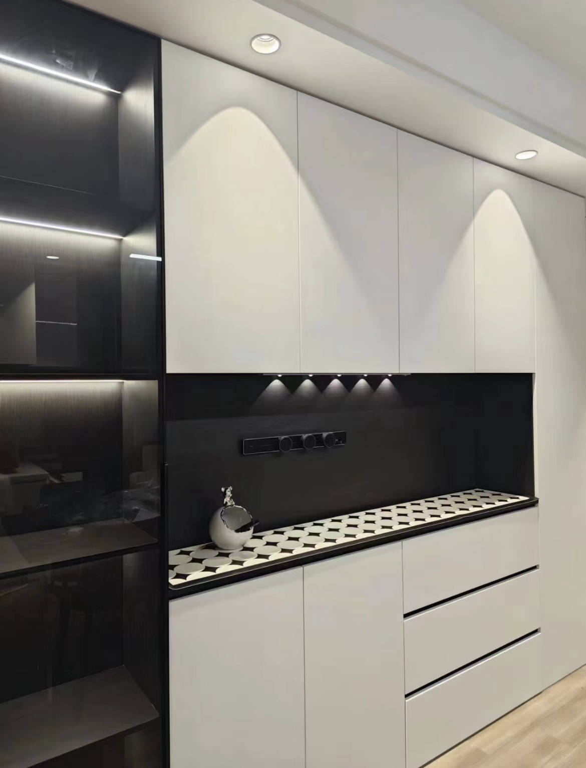 其实这种想法实现起来非常简单,现在的磁吸感应灯,直接吸附在柜子上,比前期柜子上做灯带,不管是价格还是方便程度都要有优势太多,而且打出来的灯光比灯带多样。