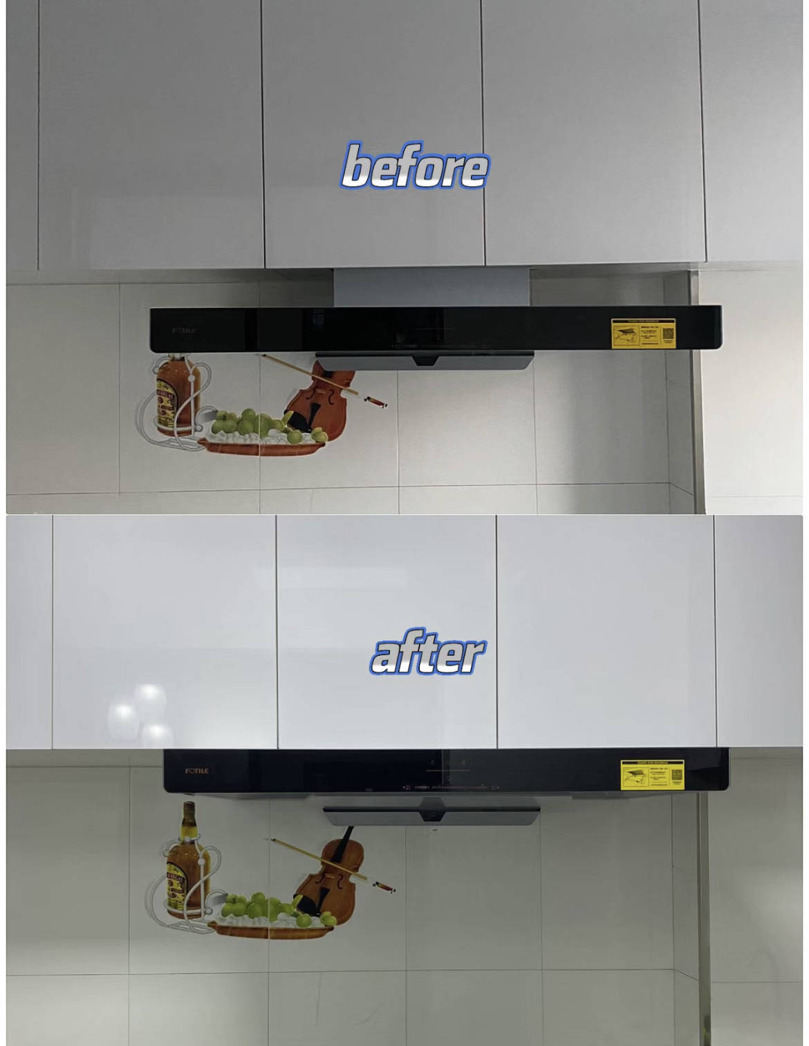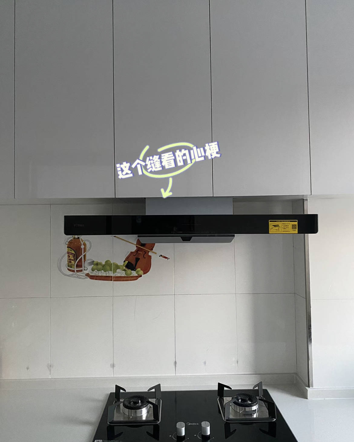 解决这个问题的方案有两个,第一种先装油烟机,再装柜子,能装到严丝合缝,可也面临着,后期一旦烟机坏了,拆解不下来的窘境。