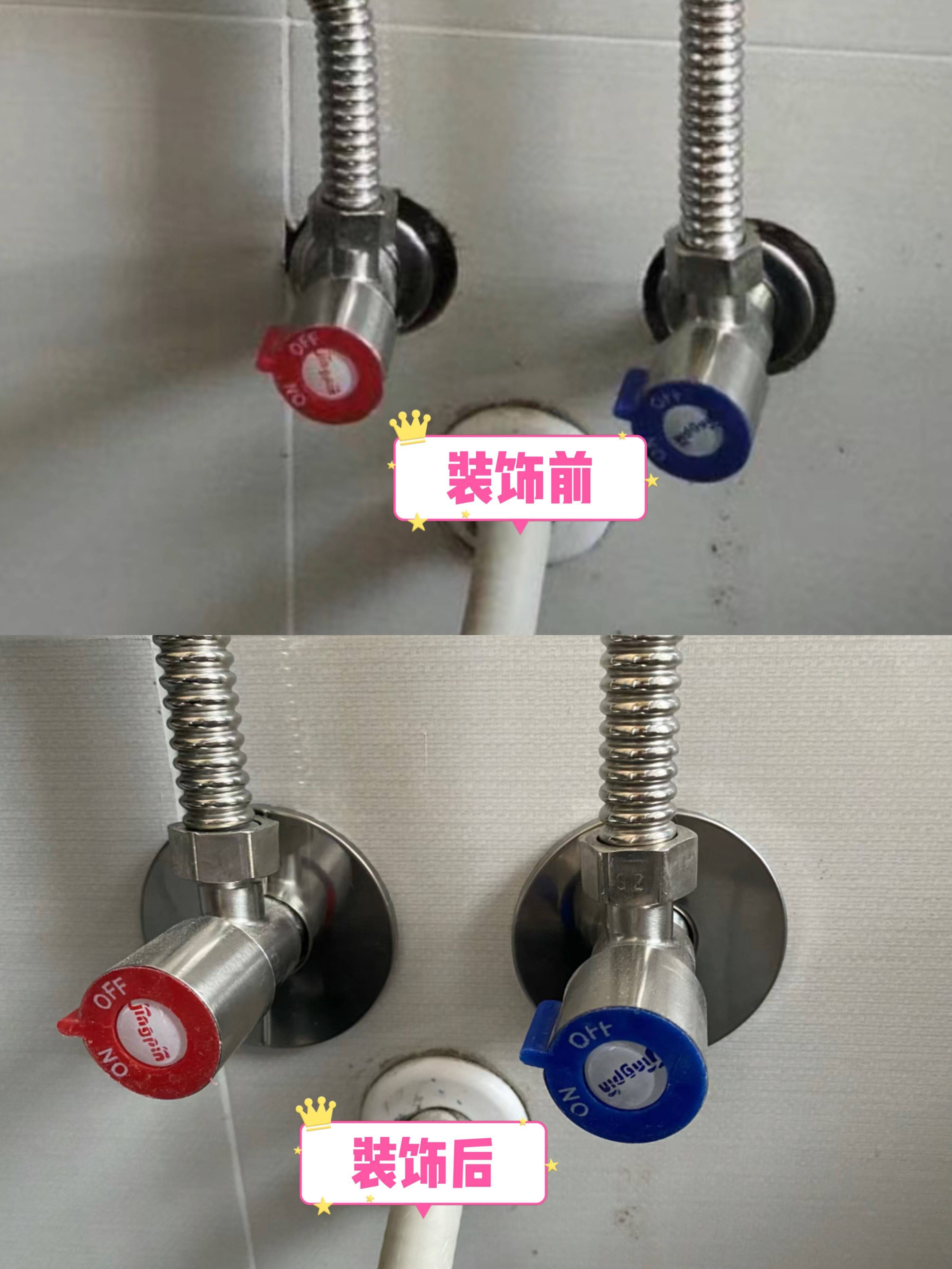 正当头疼时,让我找到了这种两半拼接式的美化盖,左右两边卡住变圆形,不需要拆角阀,还能遮住孔洞的不完美,价钱也才几块钱一对,简直不要太合适。