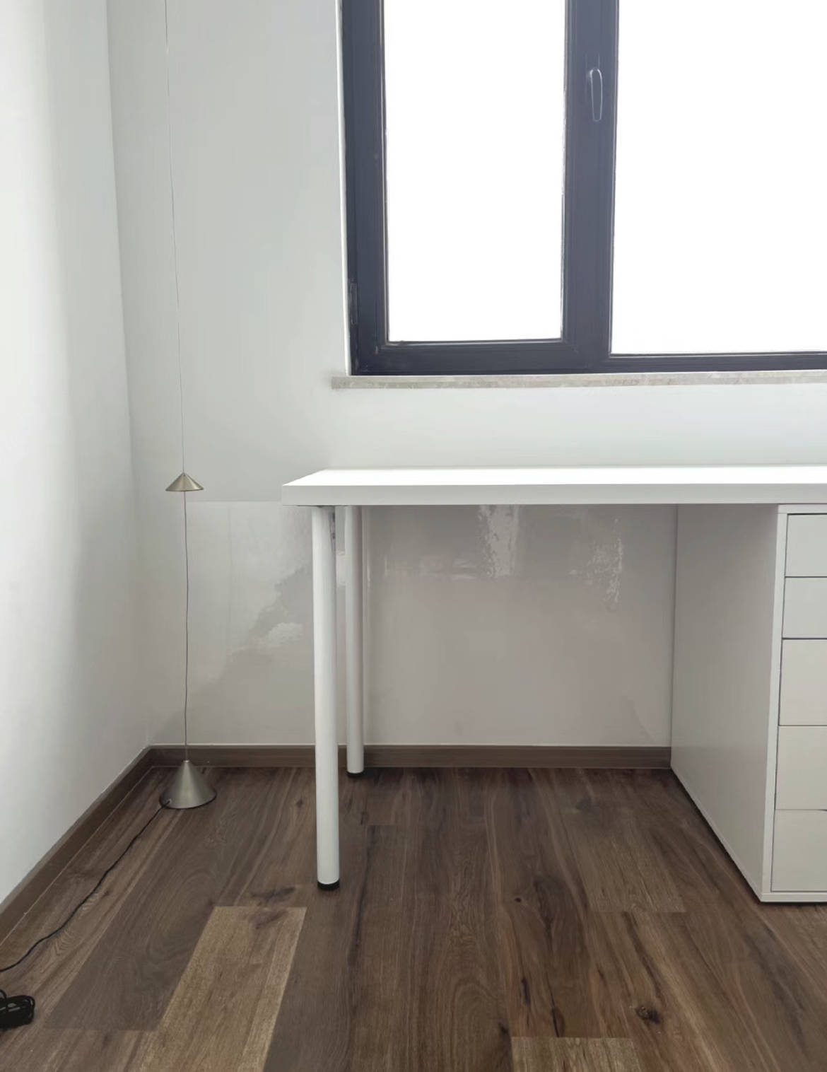 原因是当时没把脚踢墙的因素考虑进去,而书桌,尤其是定制书桌比较浅,一旦翘腿,就会无意间踢脏墙面,这还不算孩子直接蹬墙挪凳。