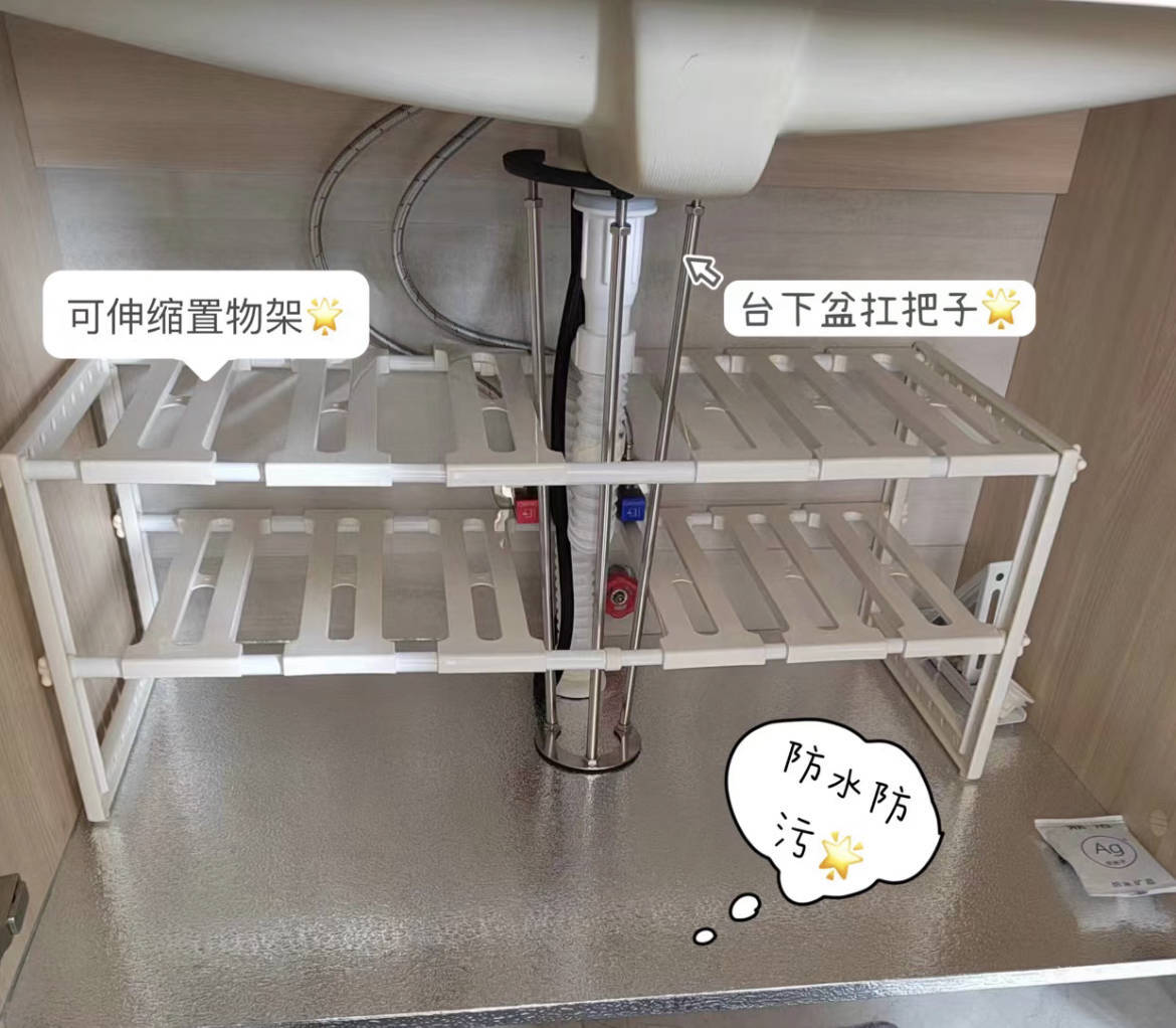 9、水槽下柜子防潮关于柜子里面的潮,体会最明显的是水槽柜下面,所以装修时,安装这里的橱柜我特意叮咛拒绝切板子,防止潮气进入柜体。