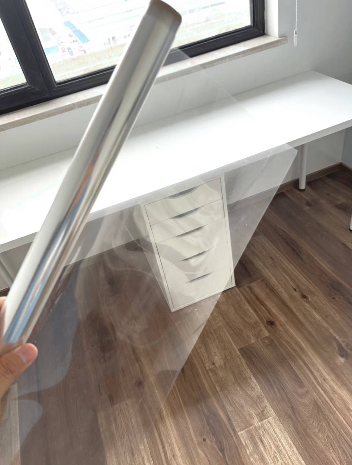 而且,整个透明的材质,贴在书桌下面,隐形度很高,关键是墙面有了它隔着之后再也不会被蹬脏了。