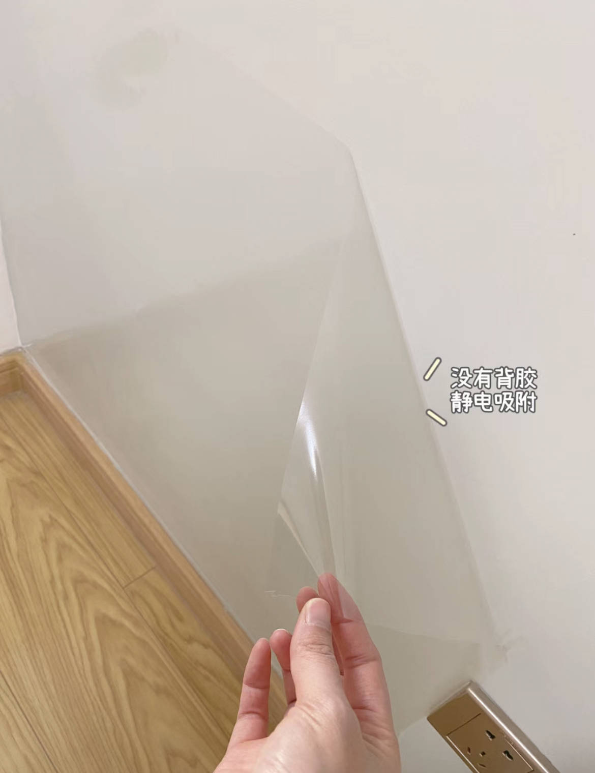 以前完全不知道还有墙面防脏贴这种东西,现在知道了,必须给它安排,它是靠静电吸附在墙面上的,所以不担心有粘贴、胶渍问题。